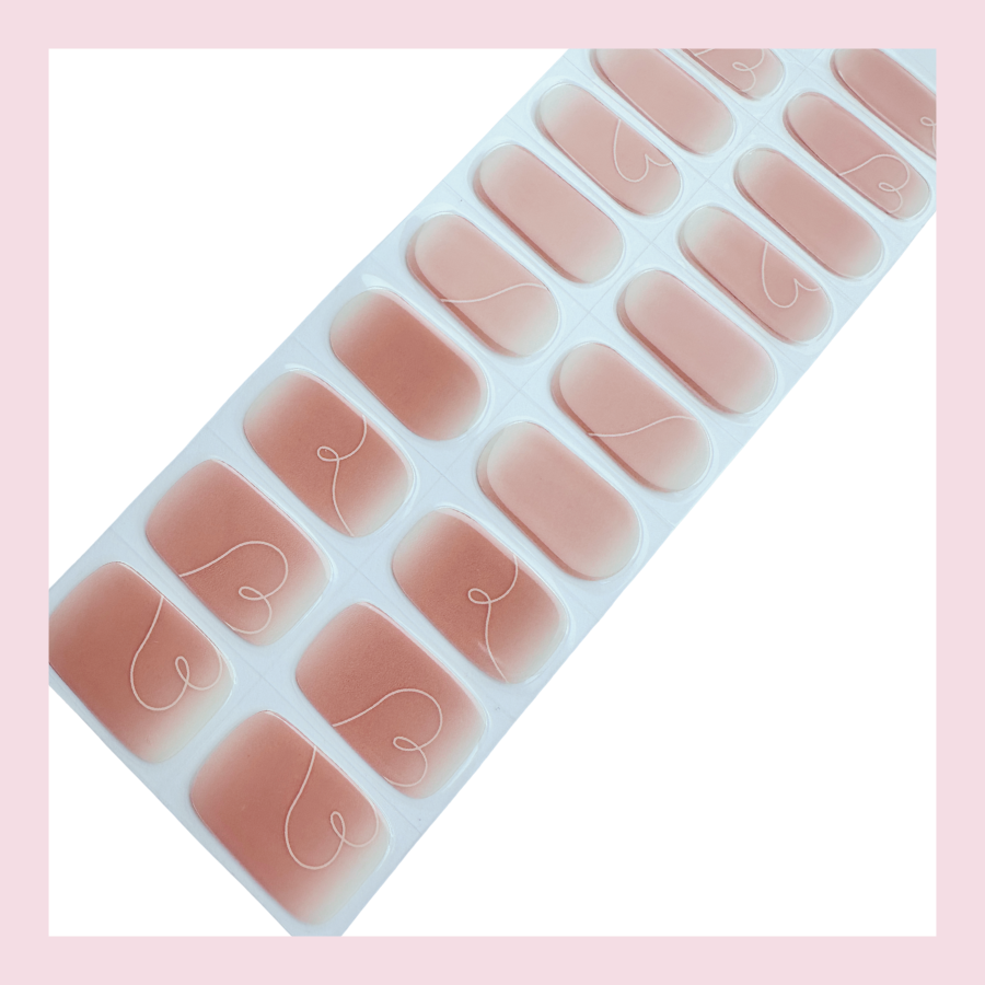 De Touch of Love Gel Nagelstickers hebben een delicate nude-roze basis met een verfijnd wit hartlijntje als subtiel accent. De zachtheid geeft de nagels een natuurlijke, verzorgde uitstraling, terwijl het hartje een speels en liefdevol detail toevoegt.